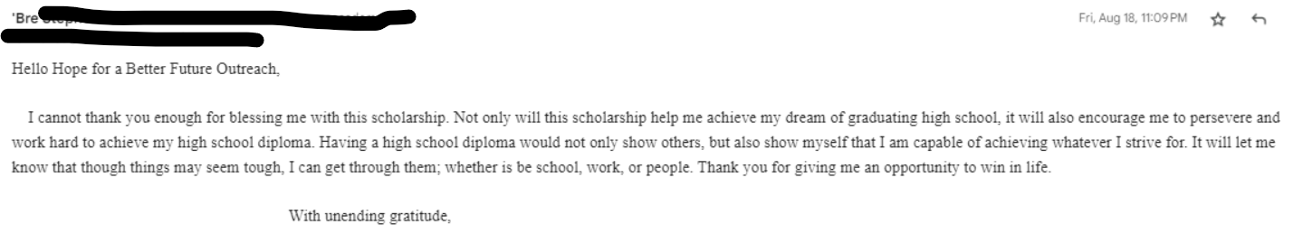 At Hope for a Better Future Outreach, our mission is to empower struggling students and dropouts by providing them with an avenue to earn an accredited high school diploma. We believe that education is the cornerstone of self-sufficiency and community development. By equipping individuals with the tools they need to succeed, we contribute to stronger, more resilient communities. Our commitment lies in bridging educational gaps, fostering growth, and creating pathways for success—whether that means pursuing higher education or entering the workforce.